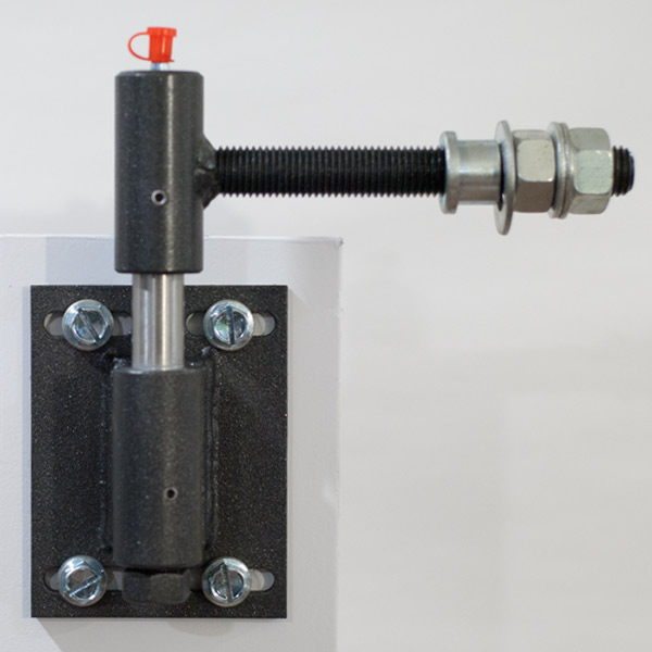 Our Deluxe Weld-On hinge features a mounting plate with four threaded studs, which is welded to the gate post. The hinge is then affixed to the plate. This setup allows for 3/4" of adjustment forward and back on the post, in addition to the 1" vertical and 2" horizontal adjustment featured on our Basic hinge |